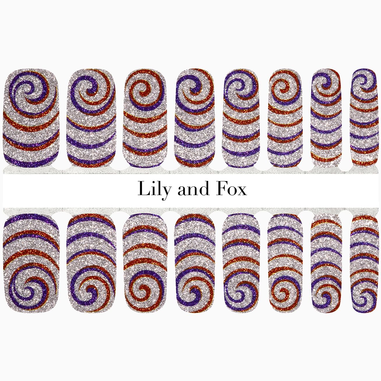 Sherbet Swirls features spirals of deep indigo-purple and copper against a silver background for this hypnotizing all-glitter manicure. Put this spell on your nails in minutes, with this mani designed to withstand all the whirls and twirls of your toughest everyday tasks.
