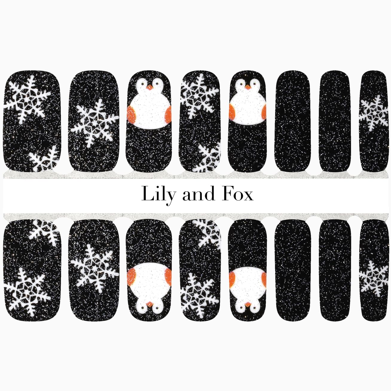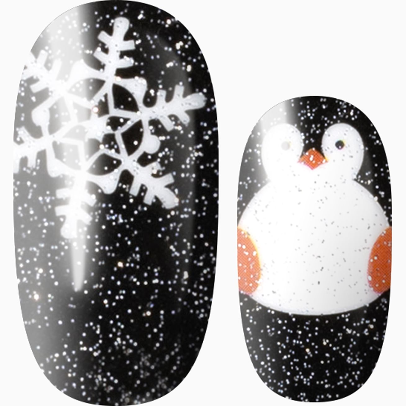 Slide this adorable penguin-themed wrap set onto your fingertips. Mix and match your look with white snowflakes, penguins, and glossy black wraps topped with a hint of silver glitter. If a penguin is your power animal, protect this manicure with a layer of top coat.